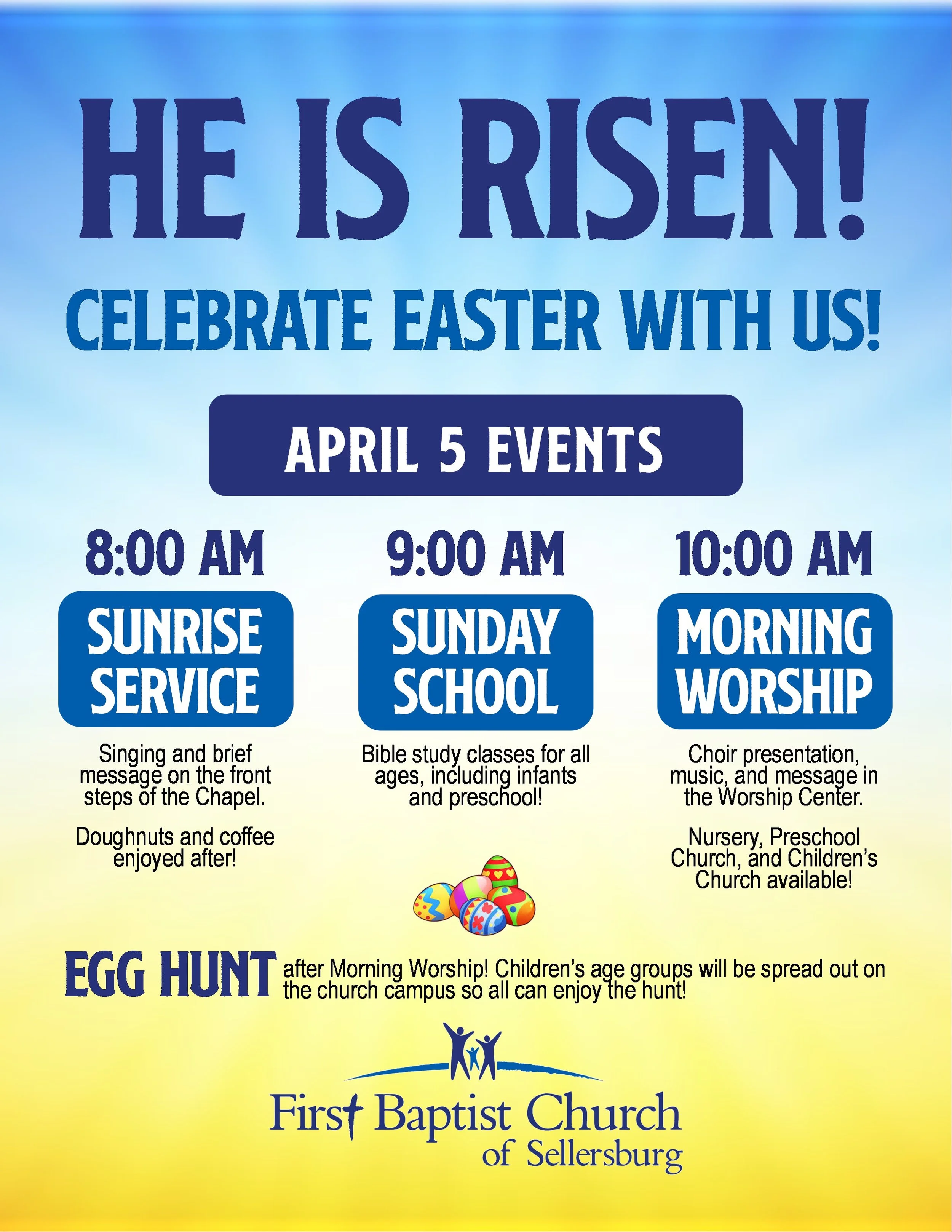 Egg hunt after Morning Worship!