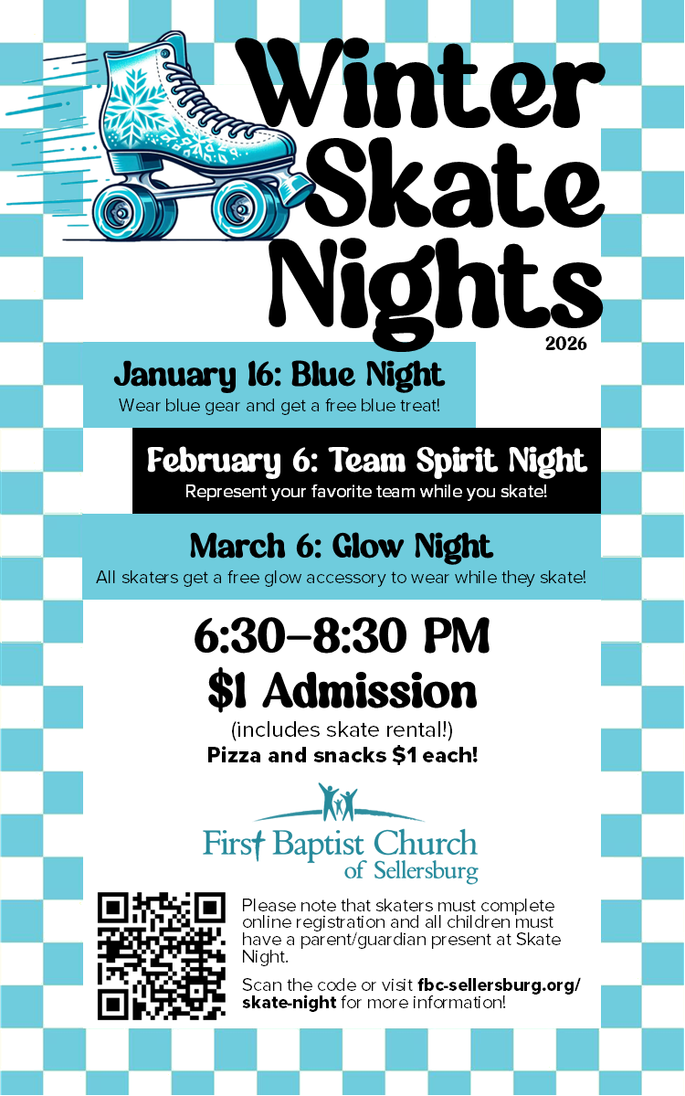The whole family is invited to Skate Night at First Baptist Sellersburg!